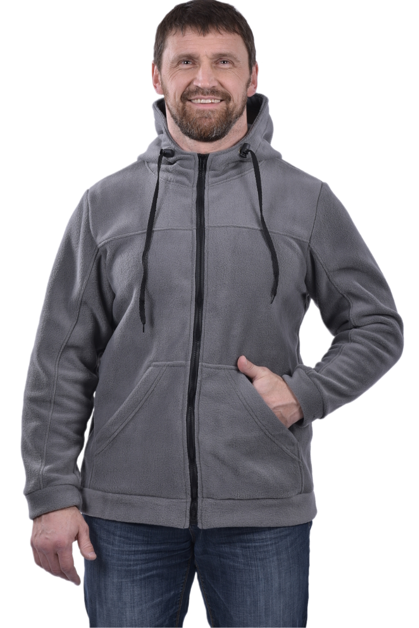 Куртка: силуэт прямой, центральная бортовая застёжка на молнию, притачной пояс, рукава втачные на манжетах, капюшон на кулисе, два накладных кармана с наклонной линией входа.