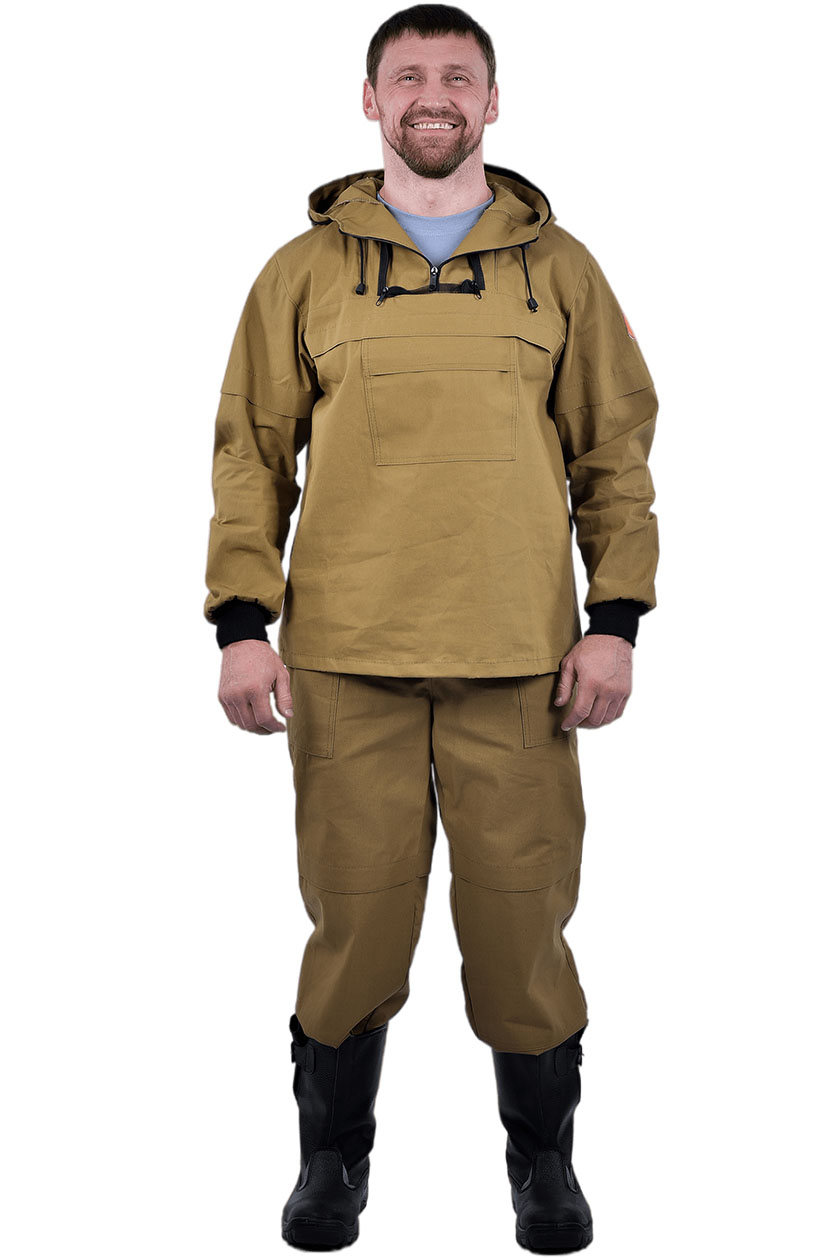 ➠ Куртка прямого силуэта с отрезными кокетками полочки, с капюшоном сложной конструкции, исключающей проникновение насекомых под одежду. Капюшон с противомоскитной сеткой. Низ куртки стягивается эластичным шнуром с фиксатором. Рукава втачные, с трикотажными манжетами-напульсниками.